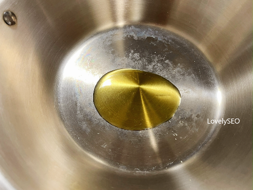 큰 냄비에 참기름을 두르고 불을 올려 줍니다.