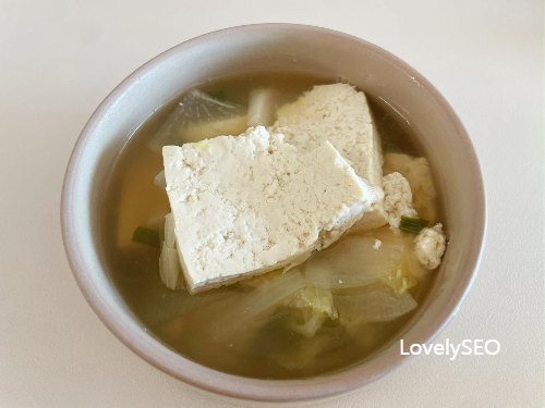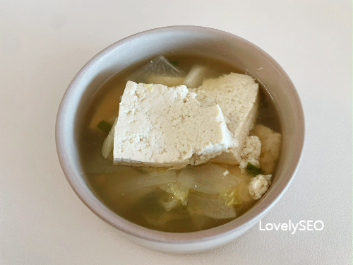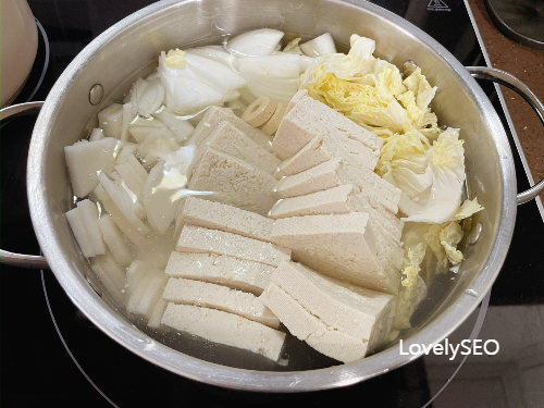 맑은 전골 국물에 단백질 함량이 높은 두부와