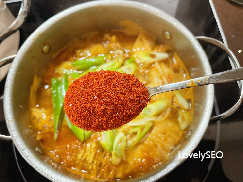 끓기 시작하면 고춧가루와 다진 마늘을 넣고