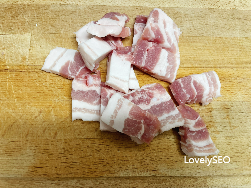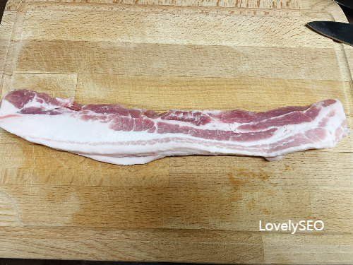 삼겹살 2줄은 먹기 좋은 크기로 잘라 줍니다.