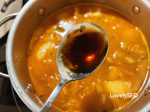 진간장, 양파도 같이 넣어서 10분 끓여 줍니다.