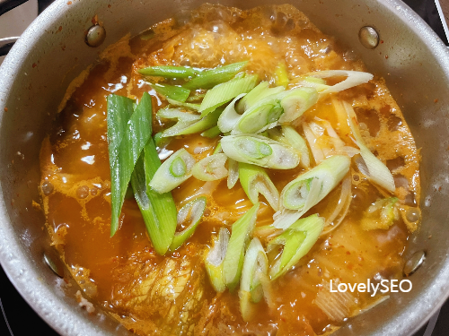 연두와 파를 넣고 중불에서 5분 정도 더 끓여 준 뒤