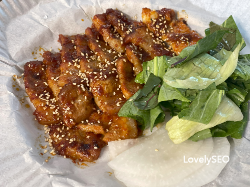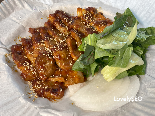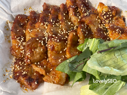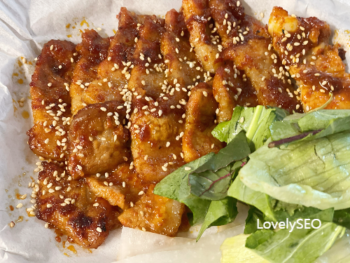 먹음직스러운 고추장삼겹살이 완성되었어요.