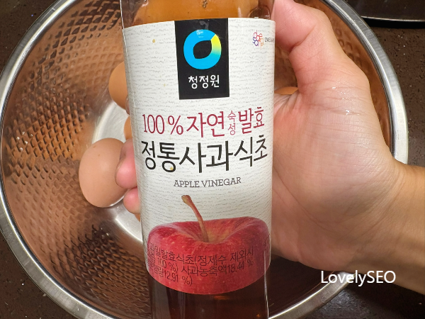 물에 식초를 넣고 계란을 담가 헹구어 줍니다.