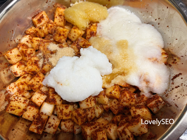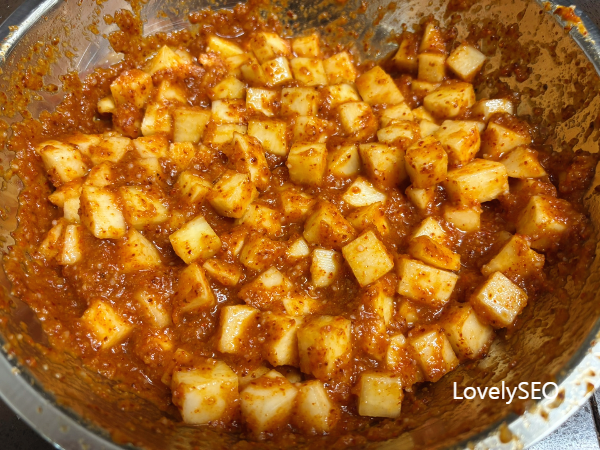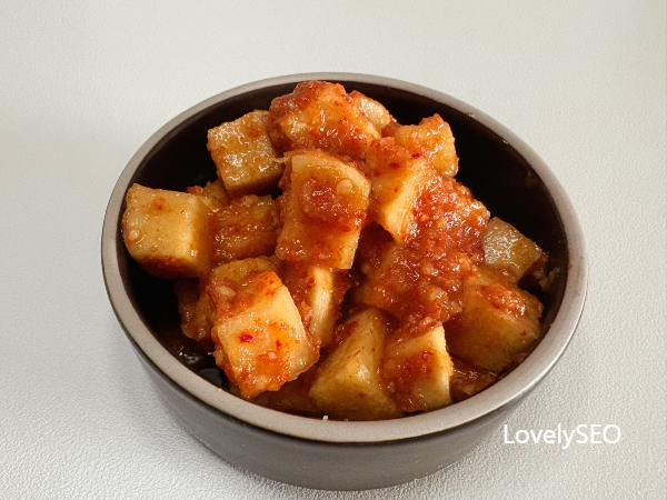 완전히 달진 않아도 양념으로 가득 찬 깍두기가