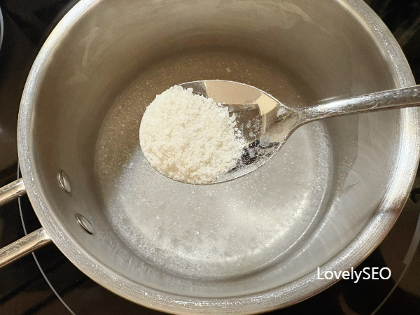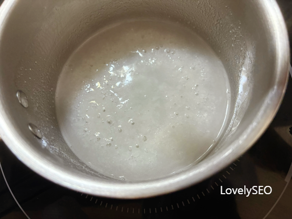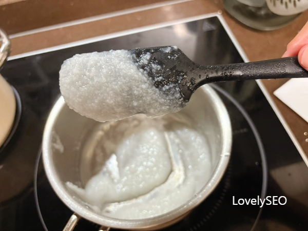 물 150ml에 쌀가루 0.5T를 넣고 끓여 줍니다.