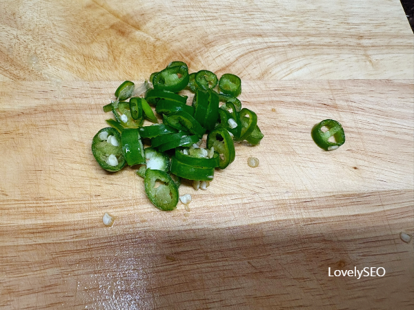 양파는 채 썰고 청양고추도 썰어줬어요.
