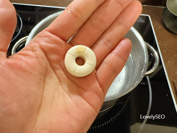 육수 코인으로 국물을 먼저 만들어 줘요.
