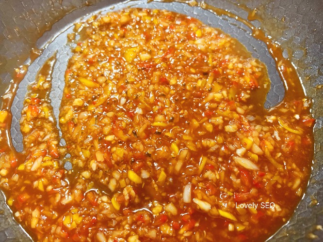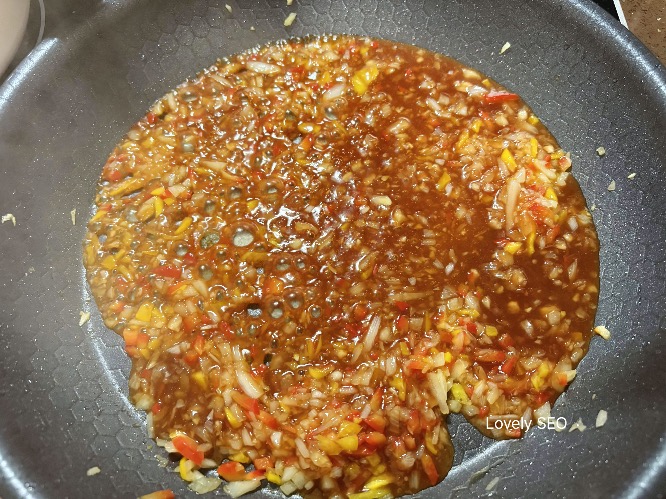 만들어둔 강정소스를 부어서 끓여 줍니다.