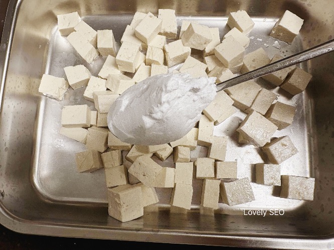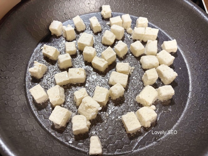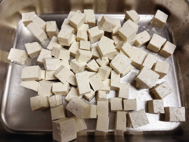 두부는 깍둑썰기로 먹기 좋게 잘라 주세요.