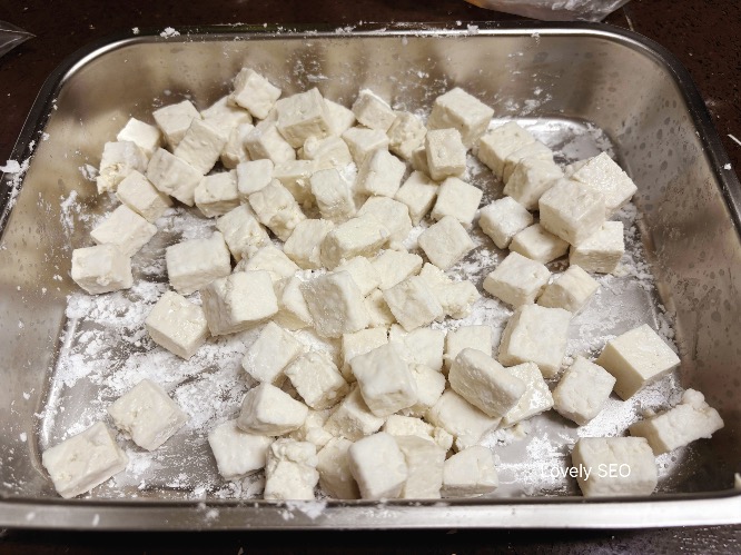 노릇노릇 두부가 잘 튀겨졌어요👍