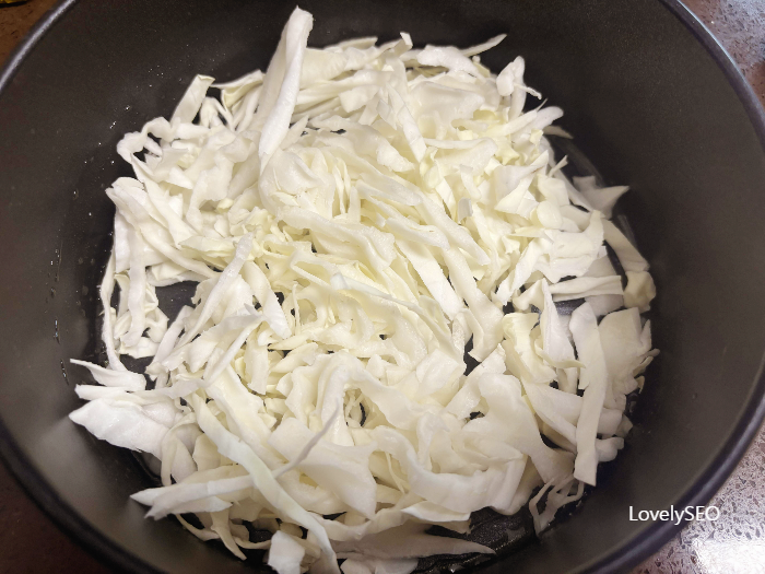 용기 가장 하단에 양배추를 먼저 넣어 주세요.