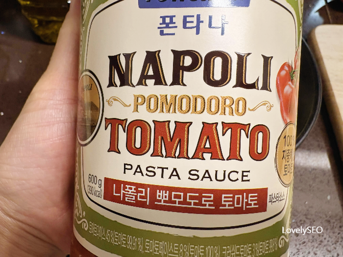 토마토소스 5T를 고루고루 뿌려서 얹어 줍니다.