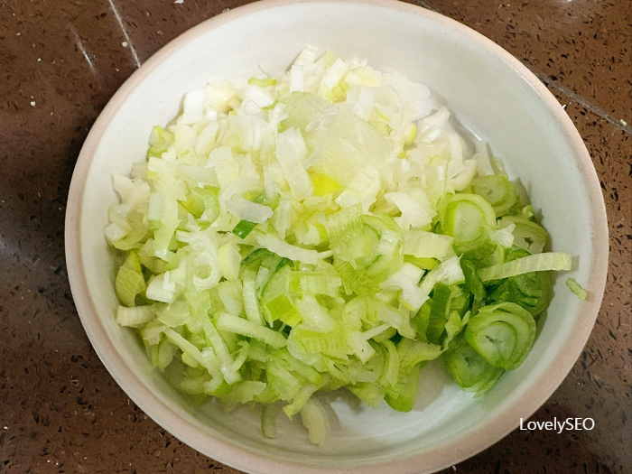 잘라놓은 대파를 모두 넣고 볶아 줍니다.