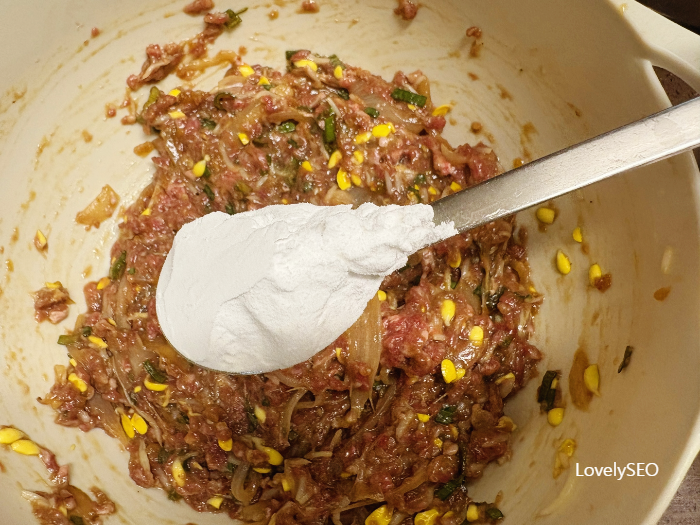 질감 조절을 위해 전분가루 3T를 넣고