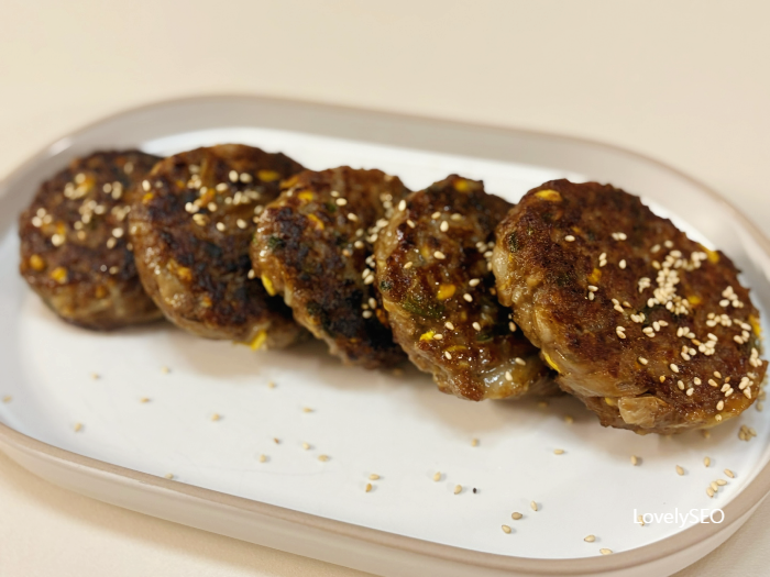 짭조름하면서도 달달한 소고기 떡갈비예요.