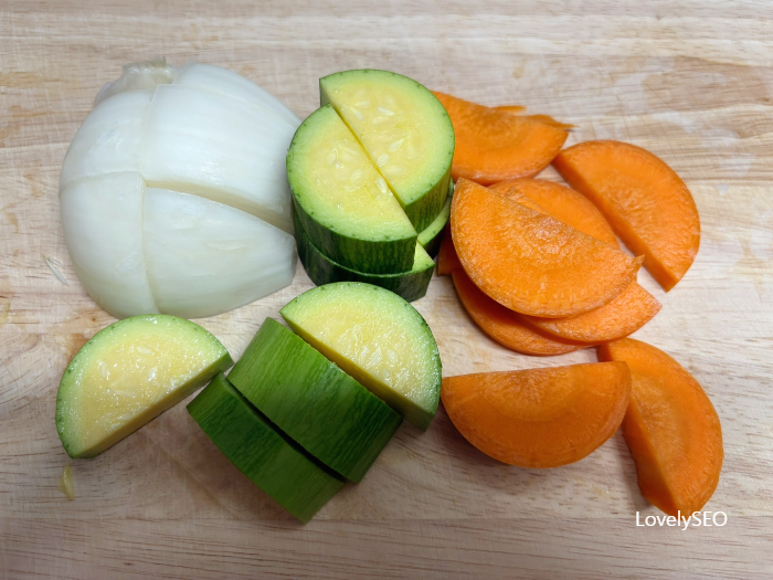 야채는 원하는 야채 또는 냉장고에 있는 야채를 사용하시면 됩니다.