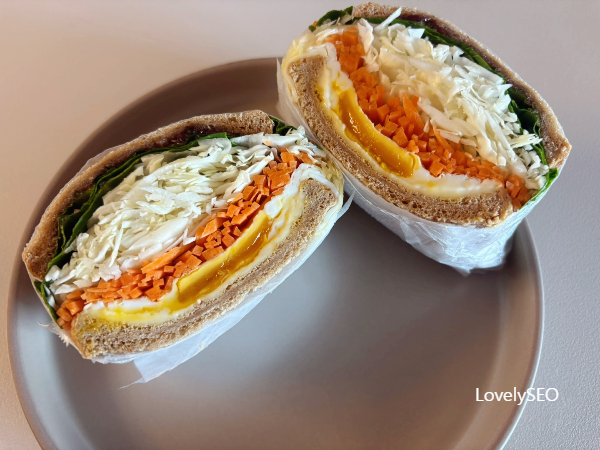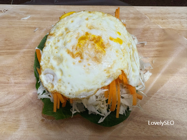 속재료가 듬뿍 들어간 양배추샌드위치가 완성되었습니다:D