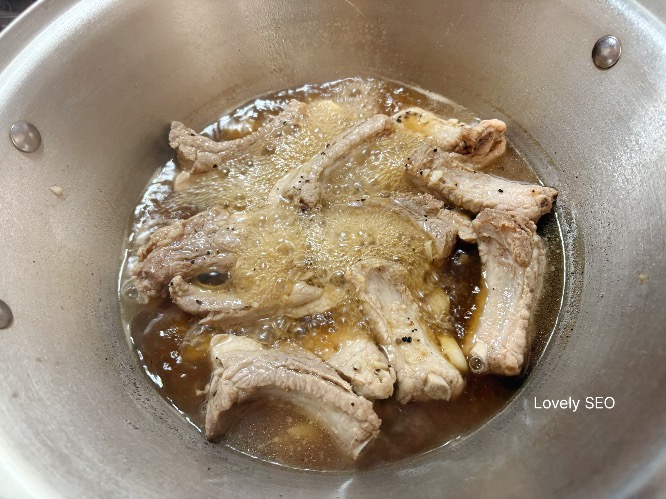 냄비에 등갈비가 잠길 만큼 물을 붓고