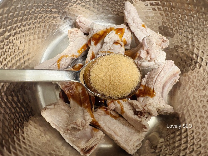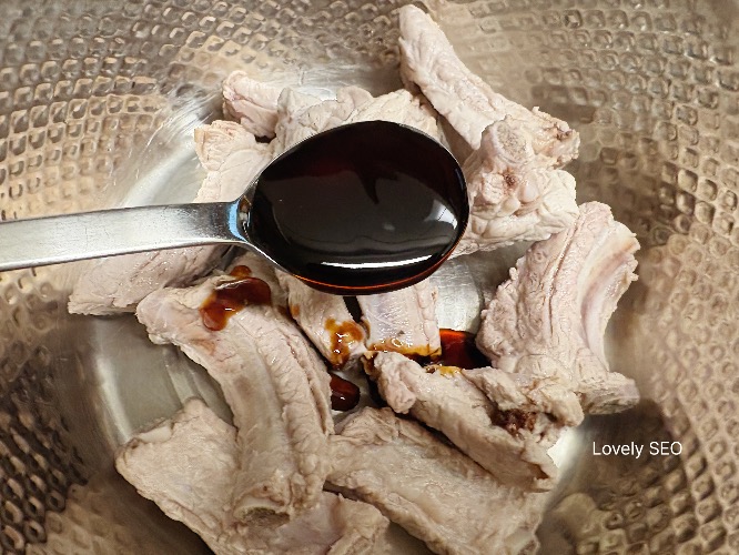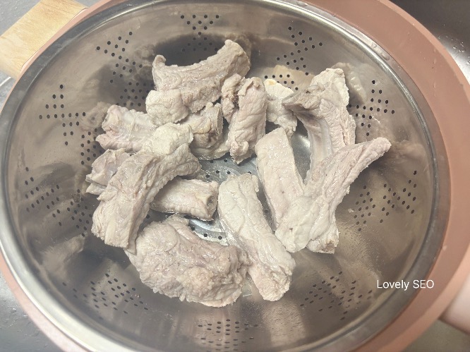 데친 등갈비는 찬물로 씻으면서