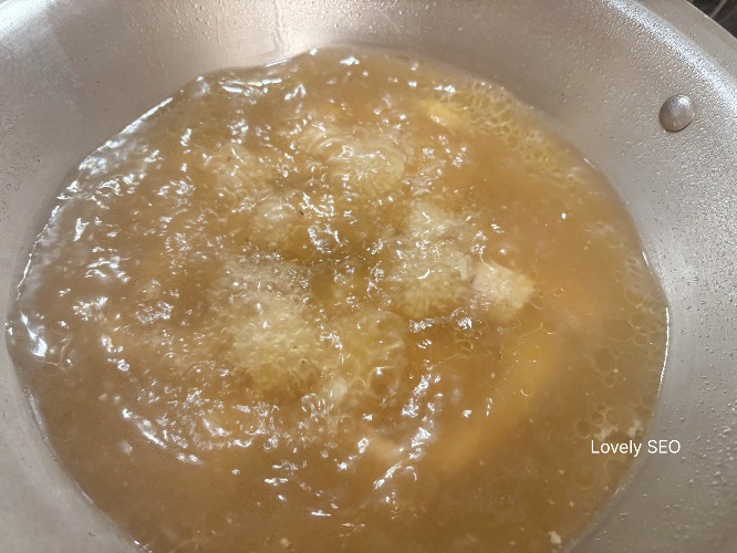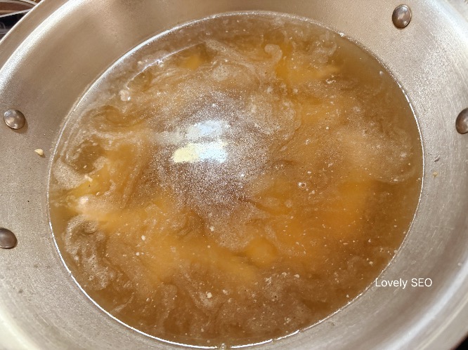 양념과 육수가 어우러지는 과정이에요.