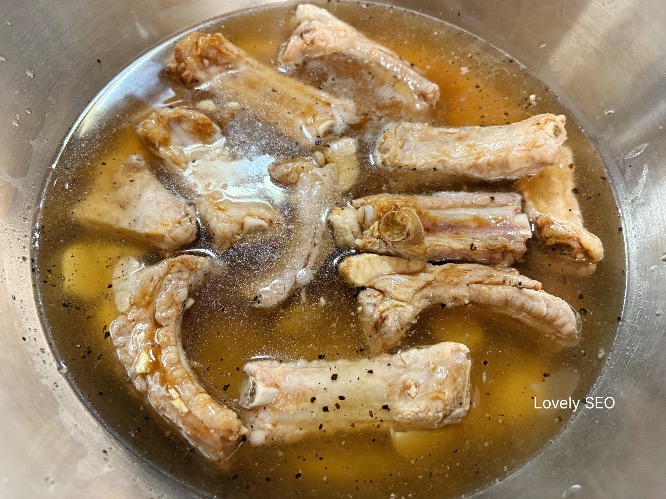 찬물로 씻은 등갈비에