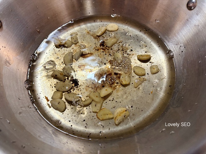 마른 냄비에 불을 켜고 마늘과 후추를 볶아요.