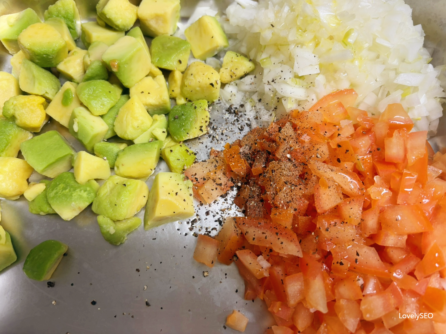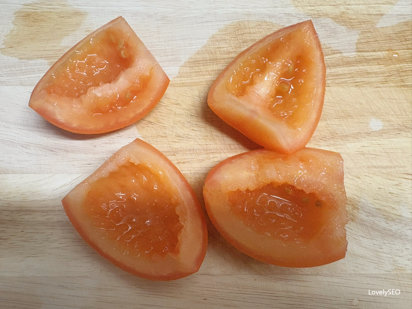 토마토는 수분이 많은 씨를 제거하고 사용해 주세요.