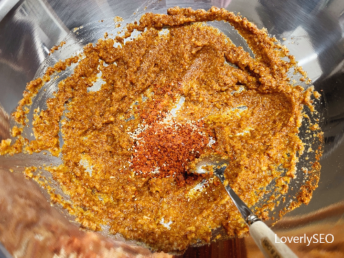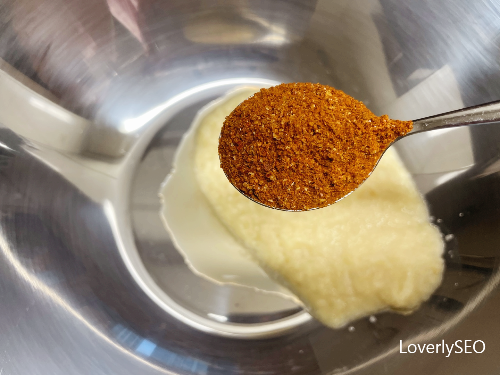 (저는 고운 고춧가루 4T, 굵은 고춧가루 1T로 배합하였습니다.)