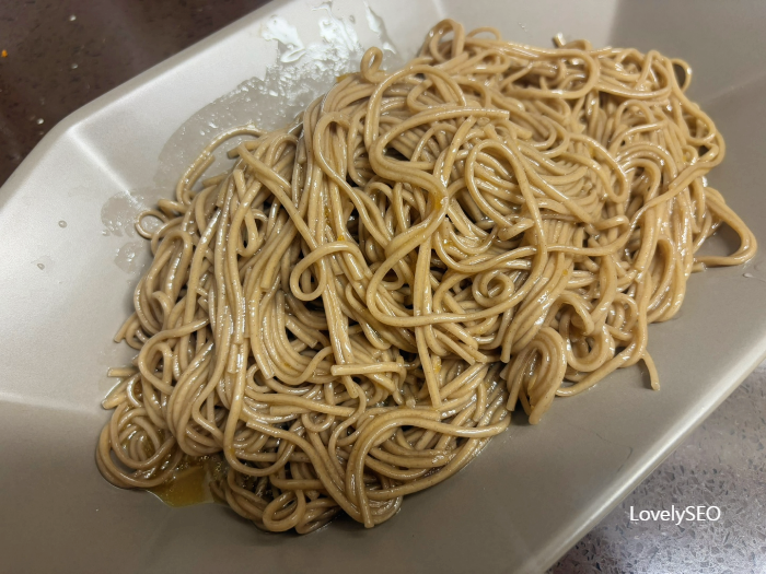 메밀면 봉지 뒷면의 조리법을 참고하여