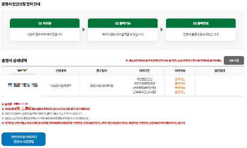 7. 그럼 바로 증명서 발급이 진행되는데 실시간으로 처리가 된답니다.