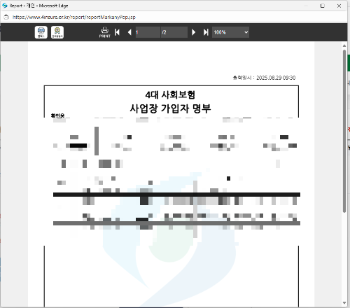 4대 사회보험 사업장 가입자 명부가 생성됩니다.