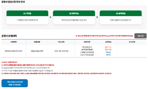 하단에 증명서발급 탭의 상세 내용이 나오는데