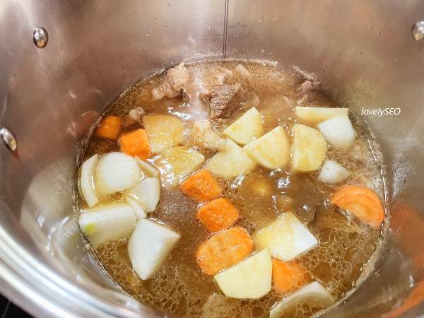 20분 뒤 야채를 넣고 다시 20분간 더 끓여 줍니다.