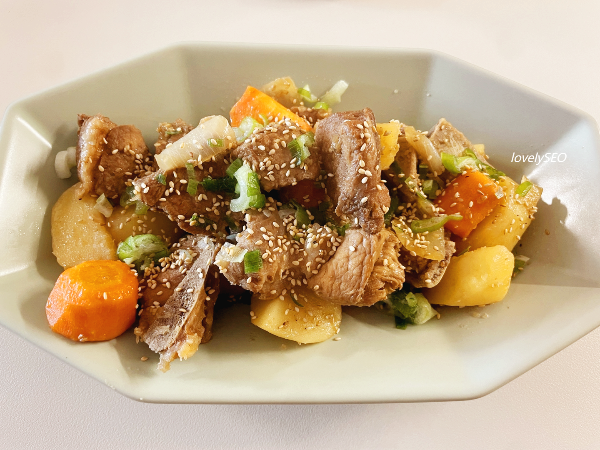 감자와 당근은 적당한 시간 동안 익혀져서 으스러짐 없이 예쁜 모양을 갖추었고요.