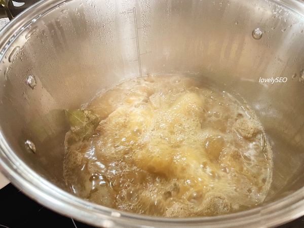 완전히 끓으면 중불로 줄이고 20분간 끓여 주세요.