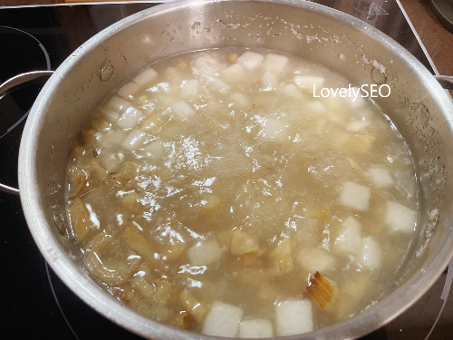 무가 완전히 익고 나면 간을 한번 보고 부족한 부분을 채워 주세요.