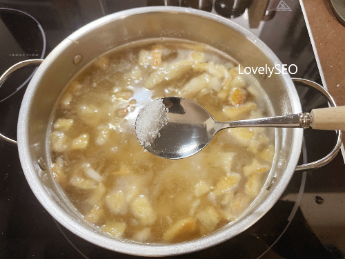 완전히 끓어오르면 중불로 낮추고 10분간 끓여주세요.