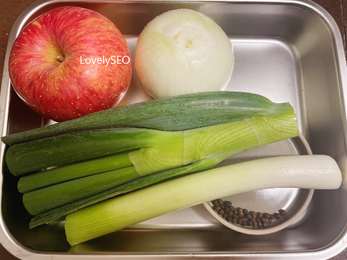 사과와 양파, 대파는 깨끗하게 씻어서 준비하여 줍니다.