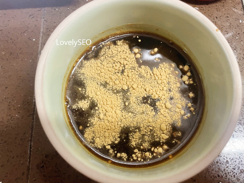 분량의 양념장을 만들고 고루고루 잘 저어 줍니다.