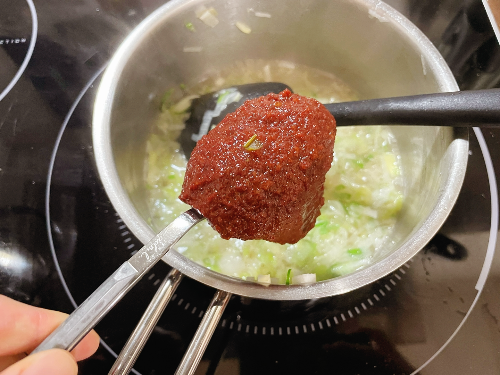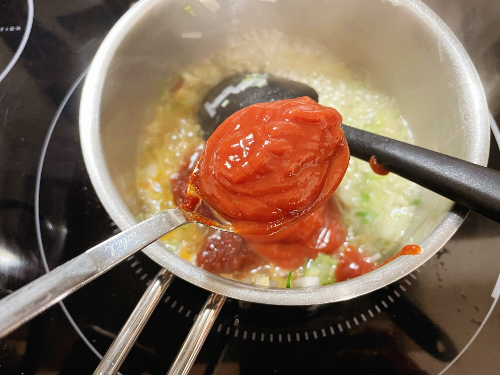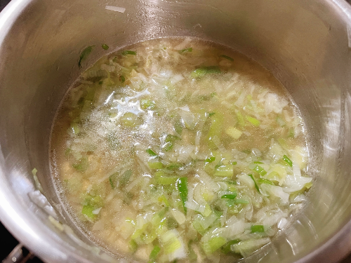 파가 어느 정도 볶아지면 물을 먼저 넣어주고