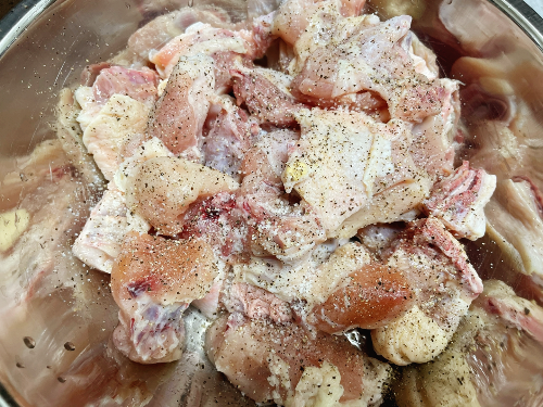 (생닭에 밑간을 하면 양념만 먼저 타 버릴 수 있기 때문에