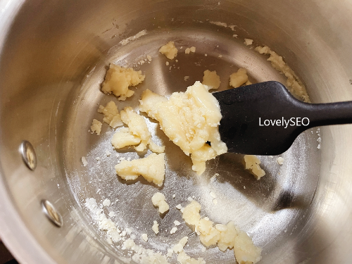 밀가루를 넣고 계속 저어 줍니다.