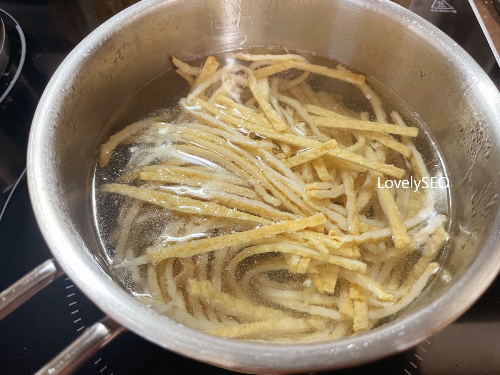 체망에서 물기를 충분히 빼 줍니다.