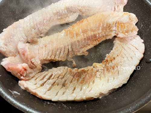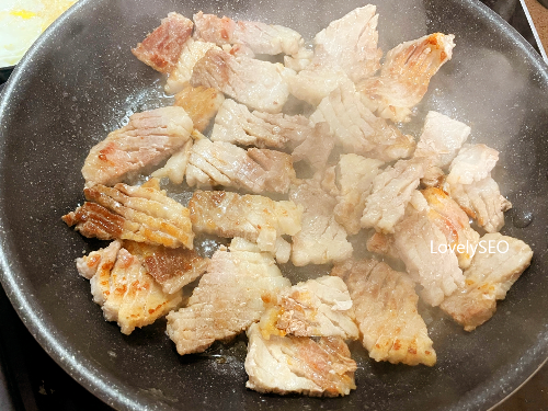 프라이팬을 예열시키고 삼겹살을 올려줍니다.