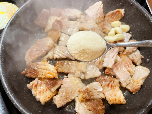 삼겹살 안으로 설탕이 흡수되면서