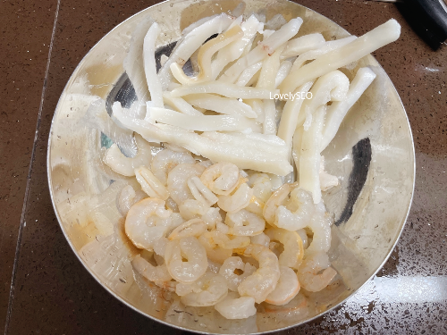 오징어와 새우는 물에 한번 씻어서 준비하여 주세요.