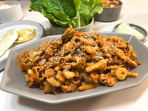 오징어와 새우를 넣고 센 불에서 5분가량 더 볶아 주면 완성입니다:D
