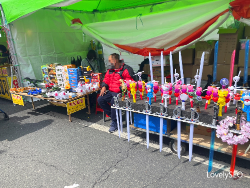 풍선, 꽃들이 다양하게 판매되고 있었답니다.