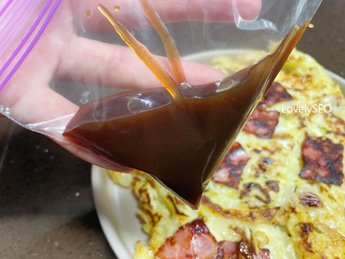 [소스와 구울 때 식용유는 오코노미야끼 1개에 사용되는 양이며